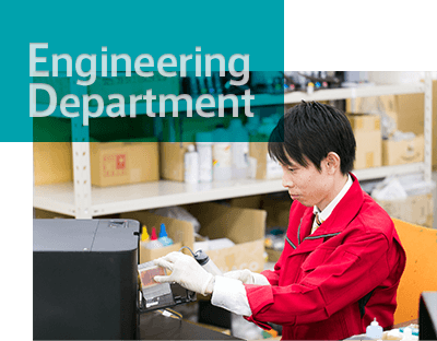 プリンターへCISSを搭載させ、出荷しています。不具合発生時や、使用方法についてのお問い合わせは全て技術部にて賜り、即時対応を心がけています。全国のお客様にご利用頂いておりますが、少しでもトラブルが減るよう日々メンテナンス技術の向上に注力し、お客様満足度を得るべく業務に取り組んでいます。